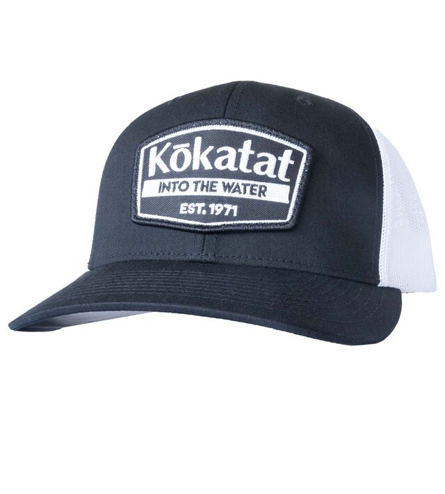 Classic, structured, 6-panel Snapback, adjustable trucker hat. Embroidered Kokatat patch logo.